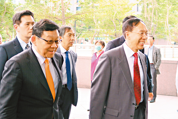 海协会会长陈德铭(前左)2日上午参访陆资企业京泰发展有限公司。台湾“中央社”