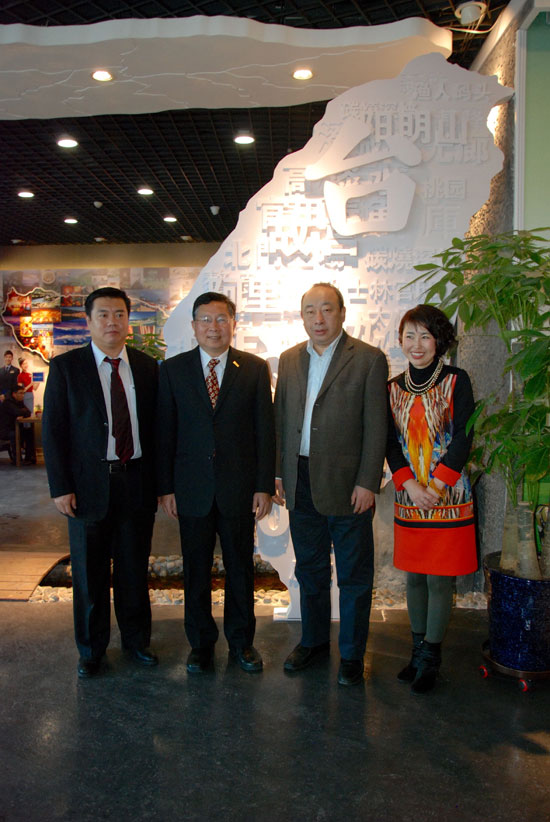 台旅会北京办事处主任杨瑞宗特别代表台旅会会长谢谓君,致赠台湾少数民族造型的精品金门高粱酒一对,期盼在台湾印象馆开馆后,能拉抬带动东北市场的旅游品质,他并表示吉林环球国旅总经理朱莹对两岸旅游交流贡献良多,特别是在去(2014)年第六届海峡两岸观光交流圆桌会议中,细致的接待安排让台湾代表印象深刻,在创新产品开发及网络行销宣传方面亦是业界领导者之一。今年是台旅会推动品质旅游、主题旅游重要的一年,为感谢吉林环球国旅成立东北首家台湾印象馆,台旅会北京办事处也将持续供应该馆台湾旅游文宣品,让旅客能获得第一手的最新讯息。