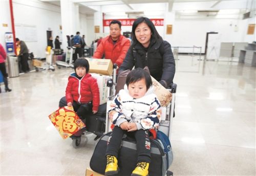 “大陆新娘”张瑞金与丈夫带着两个女儿回娘家过年 (陈晓东 摄)