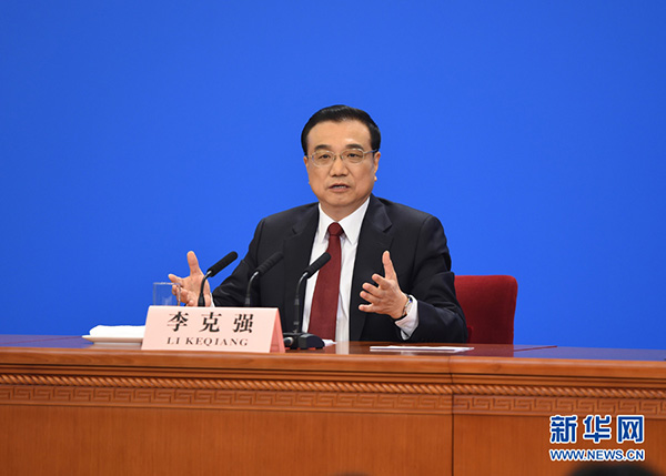 3月16日,国务院总理李克强在北京人民大会堂与中外记者见面,并回答记者提问。 新华社记者 王晔 摄