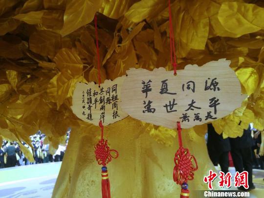图为拜祖大典主会场祈福树下,悬挂着萧万长、饶颖奇书写的祈福牌。周小云 摄