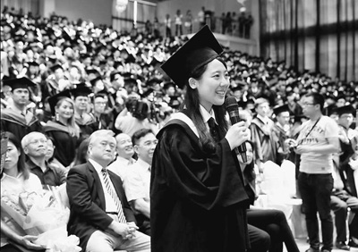 位于新北市的淡江大学举行的毕业典礼上,来自福建厦门的大陆学生洪缨在发言。新华社记者 才 扬摄