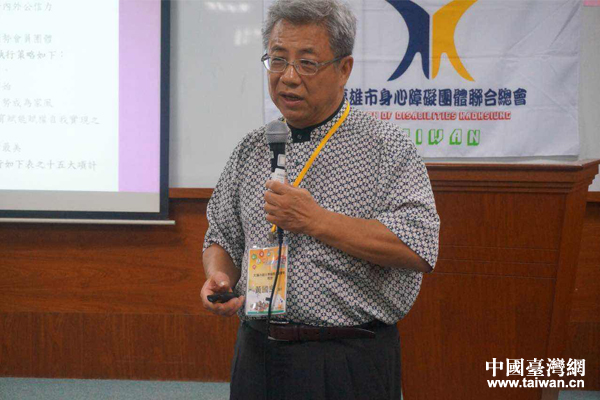 高雄市身心障碍团体联合总会代表黄国良发表演讲。(中国台湾网 雍紫薇 摄)