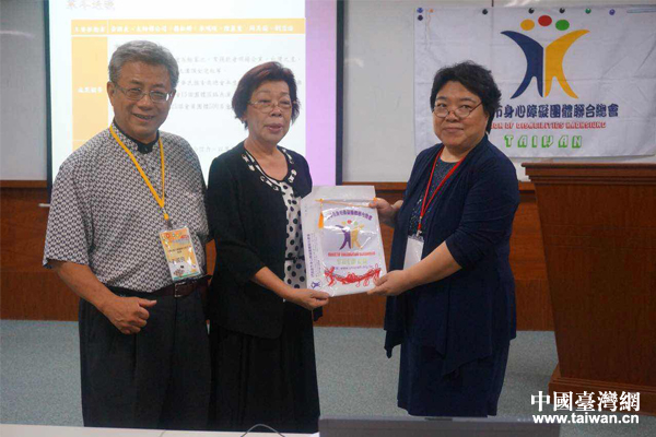 中国台湾网6月24日高雄讯(记者 雍紫薇) 6月24日,受高雄市身心障碍团体联合总会邀请,来自”京台文化交流——‘第九届中华文化快车’活动”的成员走进义守大学参加两岸身心障碍福利服务交流研讨会。在研讨会上,两岸代表就如何促进残疾人事业发展、为残疾人谋福利等问题展开了积极讨论和深入交流。