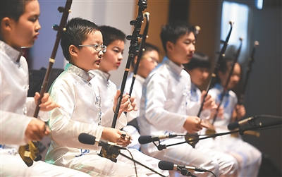南京夫子庙小学昨日举行聚星联盟“相约金陵”音乐会。夫子庙小学管乐团和国乐团、台湾文化国小管弦乐团、澳大利亚车士活小学合唱团的同台演绎,精彩纷呈。 新华报业视觉中心记者 邵 丹摄