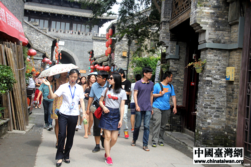 营员参观扬州东关街。(中国台湾网记者 李杰 摄)