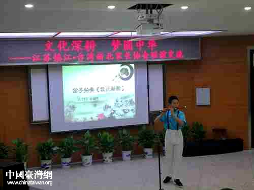 镇江中华路小学生在交流会上展示笛子演奏。(镇江市台办 章邦勇 摄)