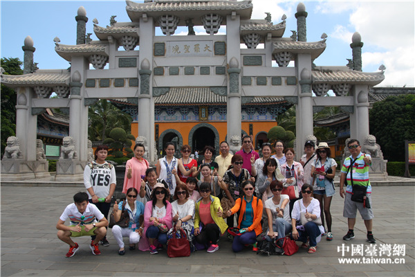 60余位在台琼籍乡亲于今日参访了位于海南省定安县文笔峰山麓的玉蟾宫,感受道教南宗的独特文化魅力。(中国台湾网 杨永青 摄)