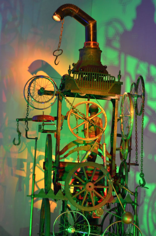 这个融合科学与艺术的奇特展览由英籍俄裔机械雕塑大师Eduard Bersudky和英国一些知名的机械设计达人手工创作的50多件作品组成,除了精致的木雕,还有趣味表演秀、互动空间和实验室等科学教育活动内容。记者们通过展览,不仅能了解机械运动的工作原理,还可深刻领悟机械设计的核心魅力。