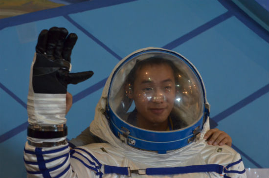 (图二:记者现场体验:感受航天服)
