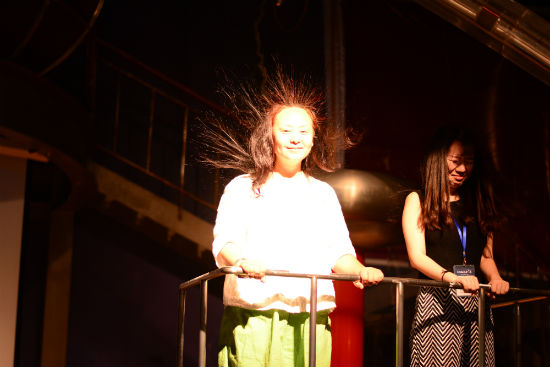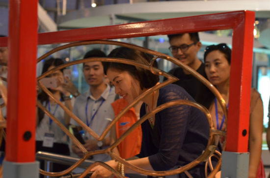 同时,记者们在互动区也亲身上阵体验了不同的互动环节:360度旋转的模拟翻车,会跳骑马舞的智能机器人、亲身上阵感受宇航员进行三维环滚训练、神奇的隐身屋、电磁舞台的怒发冲冠……在广东科学中心的游览不仅仅是一场知识与趣味的完美结合,同时也将生活中大大小小的原理以生动有趣的形式让观者亲身体验。