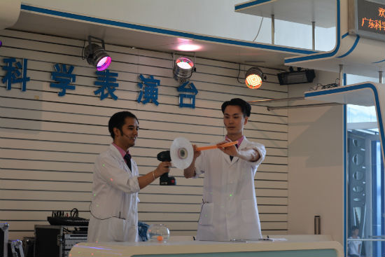 (图六:科学表演台:现场讲解离心力)