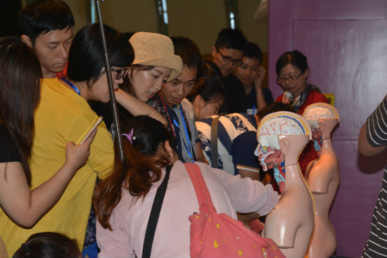在参观过程中记者们全神贯注,跟随讲解员全神贯注的认识每一个未知的领域,有时碰到不太理解的地方,也会恰当的时候提出疑问,得到满意的解答之后,则会满足的点点头。无论什么时候,无论我们离开校园有多久,在碰到新知识时,有趣的展览模式、让人蠢蠢欲动的互动方式、引经据典的讲解总会激发所有人探索的欲望。