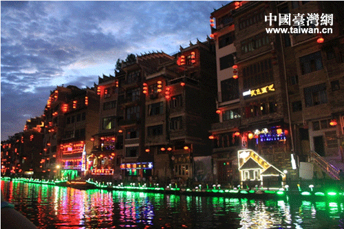 两岸灯光辉五色,