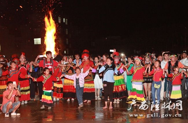 7月27日,“两岸一家亲,火把传真情”,2016年桂台少数民族文化交流活动暨“隆林彝族火把节”在德峨当地举行。来自宝岛台湾的少数民族文化交流参访团一行42人相约隆林德峨,海峡两岸宾朋欢聚一堂,共庆彝族盛大的狂欢节日——火把节,一起点燃祈盼平安幸福的火把,欢庆丰收、共享喜悦。
