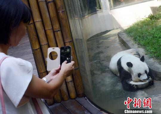 当天,参加第十三届榕台青年夏令营的40位台湾青年学生来到海峡(福州)大熊猫研究交流中心,与生活在这里的35岁高龄明星熊猫“巴斯”等大熊猫“亲密”接触。