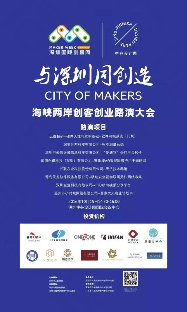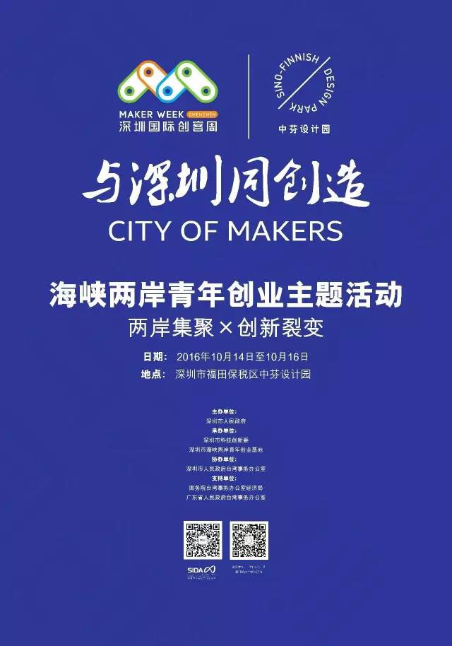 10.14 15:00-15:30第二届深圳国际创客周海峡两岸青年创业主题活动启动仪式深圳中芬设计园
