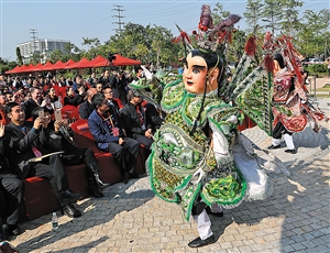 两岸新一代创意设计周活动开幕式邀请了台湾艺阵新九天民俗创艺团来热场,悠扬的音乐、奇幻的灯光、专业的表演让观众时而置身于原始森林,时而游弋惊涛骇浪,时而徜徉于花海瑶池,时而搏击于远古战场。心中的情绪随着音乐的气氛越散越浓,充分展示了音乐与杂技的完美结合兼具力量与柔美,给人以惊险刺激的感官,为观众带来叹为观止的艺术享受。在音乐民俗文化分享传播的同时,这种热情能扩散到两岸同胞之间。