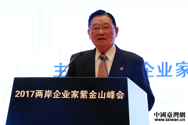 两岸企业家峰会台湾方面副理事长江丙坤在闭幕式中进行总结。(中国台湾网 尹赛楠 摄)