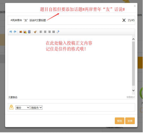 2.题目自拟,在标题前添加话题#两岸青年“友”话说#。
