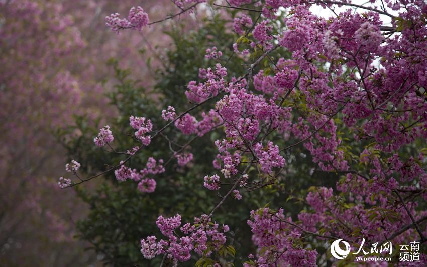 人民网普洱1月9日电(虎遵会)近日,位于云南省普洱市思茅区的万亩生态茶园内,近千棵冬樱花迎风绽放,姹紫嫣红、美景如画。(完)