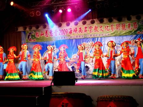 今年春节,应台湾中华道统慈惠协会、高雄市南瀛文教基金会的邀请,该团一行46人再次赴台湾参加台北市文化局举办的“海峡两岸宗教文化艺术观光节”演出活动。本次演出由云南省台办、省文化厅牵头,曲靖市委统战部、市台办、市音乐家协会、麒麟区文化局组织办理,演职人员由麒麟区歌舞团、曲靖市音乐家协会会员、省杂技团组成。在台湾15天,总共演出18场次,观众近20万人次,演出内容主要有彝族、布依族、水族、壮族、瑶族、苗族、佤族、傣族、藏族等少数民族歌舞及《转碟》、《蹬技》、《晃梯踢碗》、《五人柔术》等惊险刺激的杂技表演,其中很多节目是在各大比赛中获过奖的。台湾同胞再次感受到了云南民族歌舞的艺术魅力,拉近了云南与台湾的距离,增进了两地人民的感情。(七彩云南网 盛琴 摄影:张明武)