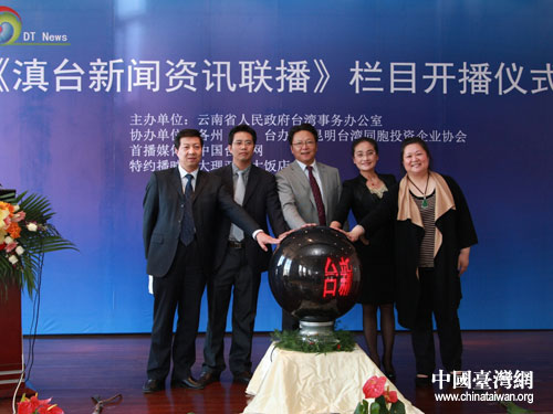 中国台湾网11月5日昆明消息 11月2日,云南省台办在昆明隆重举行《滇台新闻资讯联播》栏目开播仪式,全国首档省级台办网络视频新闻栏目正式启动。节目制作完成后,将在国家重点新闻网站、专业涉台网站中国台湾网首播,之后在其他各类网站播出。
