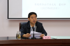 董利坤副处长结合工作实践,紧扣党政机关公文处理工作这一主题,从公文种类、公文格式和公文处理中的常见问题、应把握的重点环节等作了认真详实的讲解,给大家把握了规定、明确了标准、传授了方法、解读了迷津、懂得了技巧。