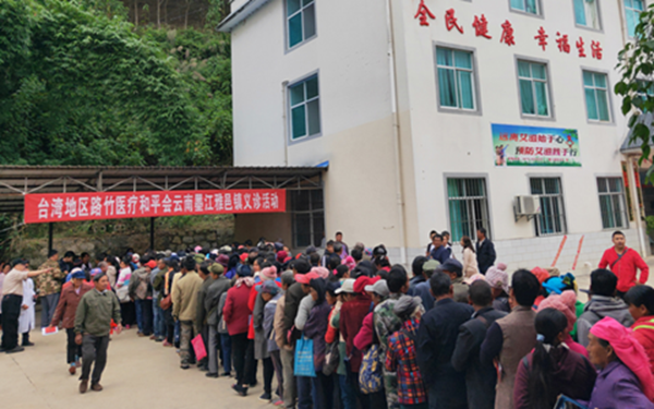 台湾路竹医疗和平会为墨江民众义诊,并为基层医务人员进行业务培训。图为排着长队等候诊疗服务的民众