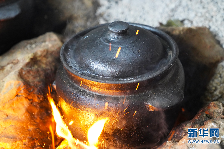 用当地烧制的土罐炖土鸡(2020年12月30日摄)。新华网发(李丹 摄)