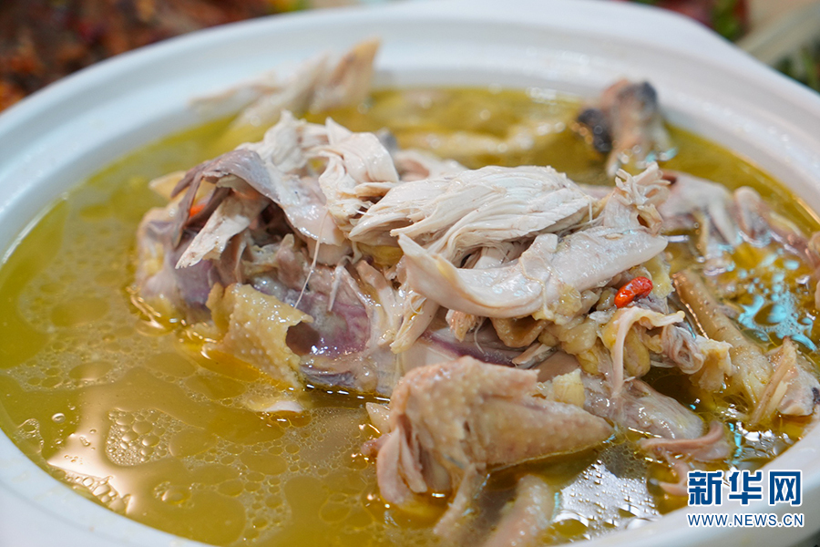 一罐成功的土罐炖土鸡,一定是鸡肉肥硕软烂、鸡汤浓醇金黄的(2020年12月30日摄)。新华网发(李丹 摄)