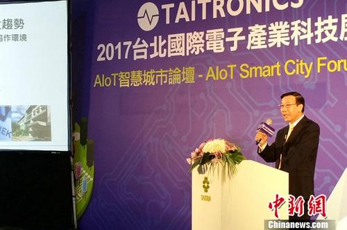 10月11日,2017台北国际电子产业科技展智慧城市论坛在台北举行。中国机电产品进出口商会台北办事处主任李荣民表示“对于大陆智慧城市建设衍生出的庞大市场,毫无疑问台商要踊跃进场。”中新社记者 邢利宇 摄