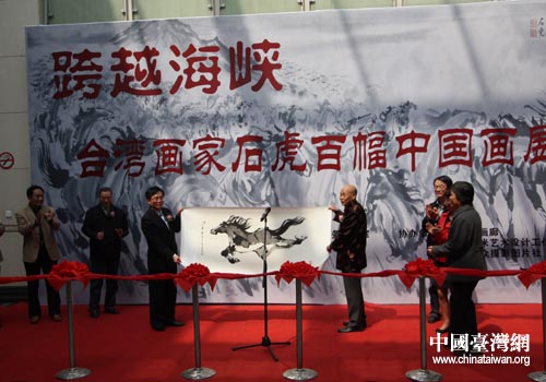 “跨越海峡——台湾画家石虎百幅中国画展”活动现场。(图片来源:嘉兴市台办)