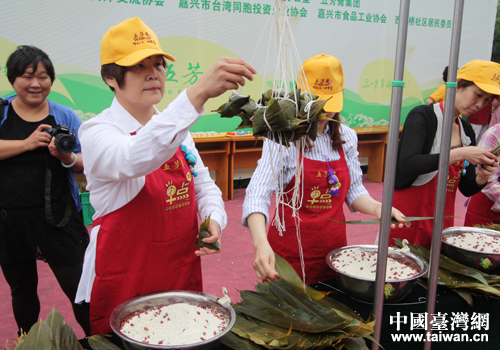 中国台湾网6月14日嘉兴消息 日前,由嘉兴市台办、市节庆办和市食品工业协会、五芳斋集团等联合举办的海峡两岸同胞包粽友谊赛在嘉禾北京城广场举行。市委宣传部常务副部长马洪涛,市台办主任张形芳,副主任姜培洪、章建琴,及市食品工业协会、五芳斋集团等有关领导出席活动。