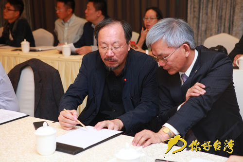 林磐耸、黄清龙交流。(你好台湾网 图)
