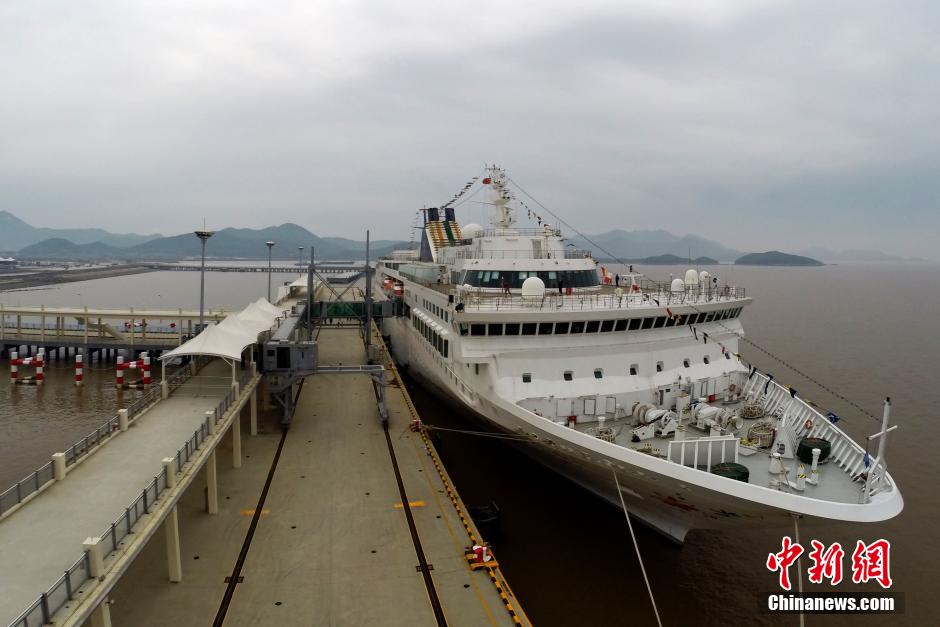 4月24日,舟山群岛国际邮轮港“中华泰山号”邮轮首航台湾,开启台湾“自由行”模式,这也是舟山国际邮轮港作为出发港的首个航次,至此,舟山国际邮轮港拉开首发序幕。据了解,2014年10月13日,浙江省首个国际邮轮港“舟山群岛国际邮轮港”正式开港,舟山也成为继上海、天津、厦门、三亚后大陆第五个拥有国际邮轮码头的城市。中新社发 姚峰 摄