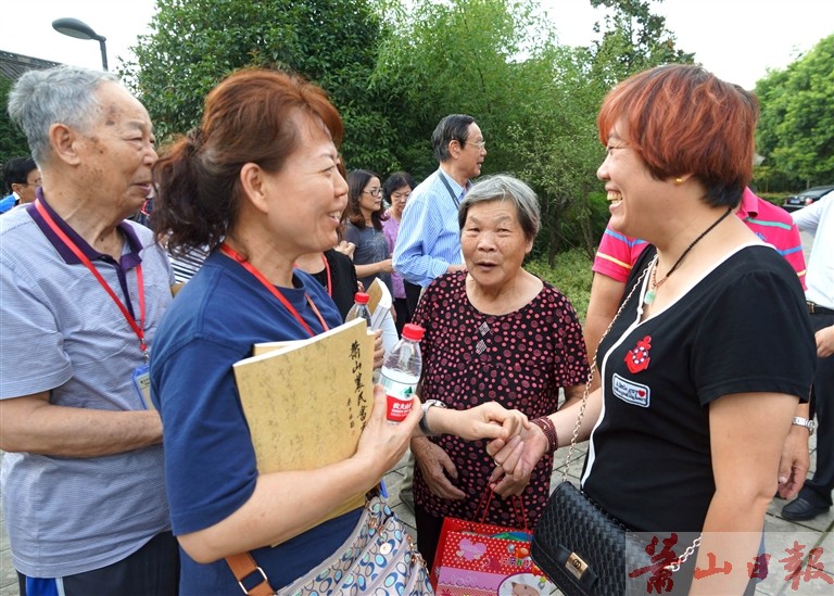 9月7日晚,王玉美、王苓芯姐妹俩随台北市萧山同乡会“寻根圆梦”参访团到萧山寻亲。几经周折找到了家住临浦王村的王永松,王玉美姐妹俩终于见到了从未见面过的亲婶婶和堂兄妹们,亲人相见,热泪盈眶。