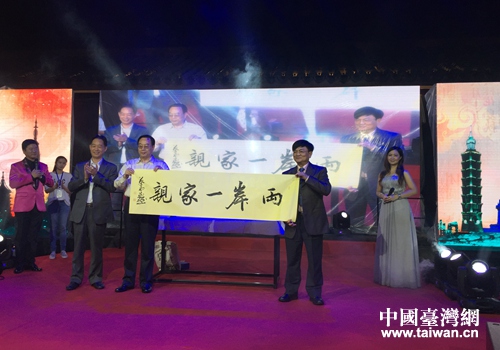 汇聚两岸文化与特色的歌舞、诗朗诵、特色乐器等精彩节目也一一上演:诗歌朗诵《富春山居图》、《西湖诗集》、《乡愁》等节目让人情思涌动;台湾少数民族歌手带来的《外婆的澎湖湾》充满宝岛风情;两岸青年歌手演唱的《人间西湖》、《故乡的云》、《城里的月光》、《站在高岗上》等风靡两岸、脍炙人口的经典歌曲和《梁祝》的二胡演奏等节目也赢得了在场观众的阵阵掌声;著名书法家蔡云超先生即席挥毫泼墨,写下了“两岸一家亲”的真情墨宝,并由市政协主席叶明现场赠送给台商协会会长刘光荣先生。