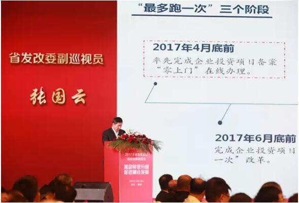 近日,浙江省台资企业创业创新推进会在浙江嘉善举行。会上,浙江省发改委副巡视员张国云就浙江致力于优化台商投资环境、推进企业投资项目“最多跑一次”改革两个方面作了介绍。