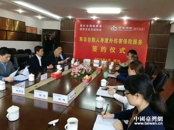 中国台湾网4月23日绍兴讯 为了进一步做好来访台胞的服务保障工作,4月17日,绍兴市海峡两岸经济文化交流协会与中华保险绍兴中心支公司举行签约仪式,由中华保险绍兴中心支公司免费为500名应邀来绍兴开展参观、交流、实习等活动的台湾同胞提供在绍期间人身意外伤害保险,人均金额为人民币20万元,累计保险金额人民币1亿元。