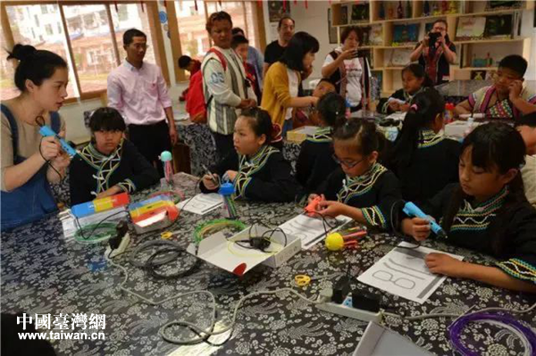 随后,他们来到了学校创客教室,在老师的指导下学习3D打印。台湾小学生们认真学习,用心操作。看到自己的劳动成果,个个喜笑颜开。