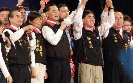 连战呼吁台北和高雄的市民,要让同样涉入弊案的谢长廷和陈菊败选,来惩罚陈水扁。他说,“明天谢某人选输了,陈某人选输了,罪魁祸首是陈水扁先生还有他的夫人,还有他宝贝的女婿,这些人明天一定要为民进党的大输负起责任,不能够脱身”。 (赵静)