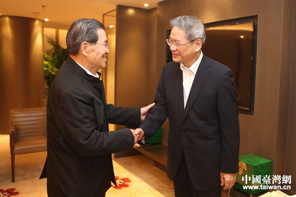 5日,中共中央台办、国务院台办主任张志军在南京会见了前来参加2017两岸企业家紫金山峰会的台湾两岸共同市场基金会荣誉董事长萧万长。(中国台湾网 扶海涛 摄)