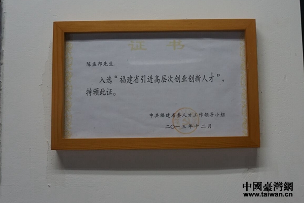 陈孟邦荣获福建省“百人计划”企业创新人才奖。(中国台湾网 张玲 摄)