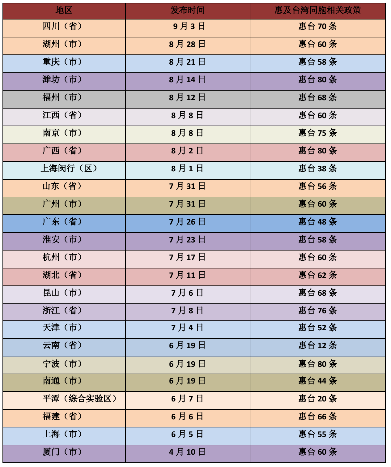 最新!各省市惠及台湾同胞政策汇总持续更新ing