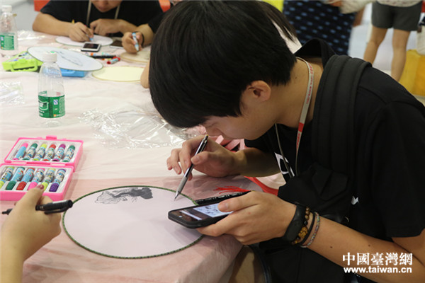 在首博的互动教室,两岸青年正在体验手绘扇面。(中国台湾网 郜利敏 摄)