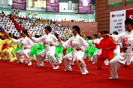 中国台湾网11月10日讯 据国家体育总局网站报道,11月7日,第四届海峡两岸暨港澳地区健身气功交流比赛正式拉开帷幕 。近千名健身气功爱好者齐聚广东省佛山市岭南明珠体育馆,开展健身气功·易筋经、五禽戏、六字诀、八段锦4种普及功法的交流比赛。原国家体育总局局长袁伟民、国家体育总局健身气功管理中心主任常建平等领导嘉宾出席开幕仪式。
