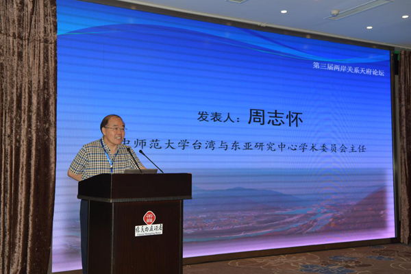 华中师范大学台湾与东亚研究中心教授周志怀作主题演讲。(图片来源:四川省台办)