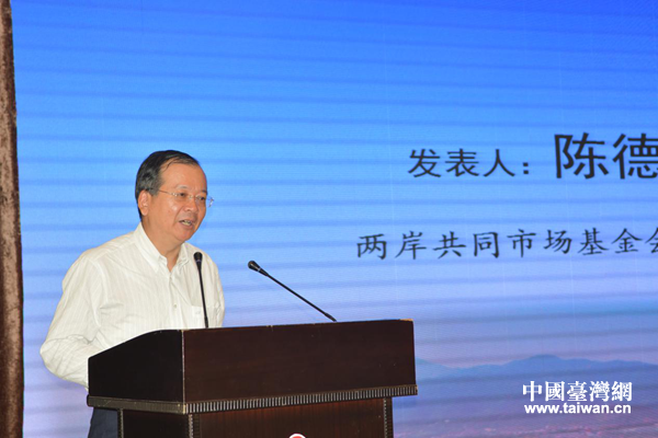 两岸共同市场基金会执行长陈德升作主题演讲。(图片来源:四川省台办)