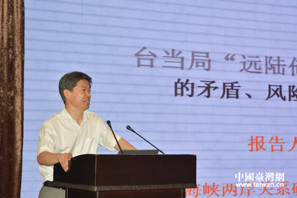 海峡两岸关系研究中心主任仇开明作主题演讲。(图片来源:四川省台办)